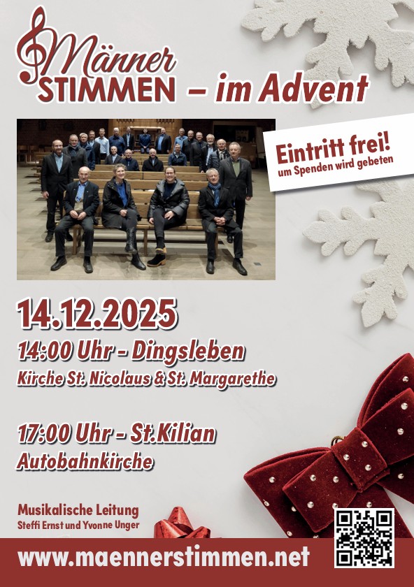 Konzert in der Kirche St.Kilian am 14.12.2025 um 17 Uhr – „Männerstimmen im Advent“